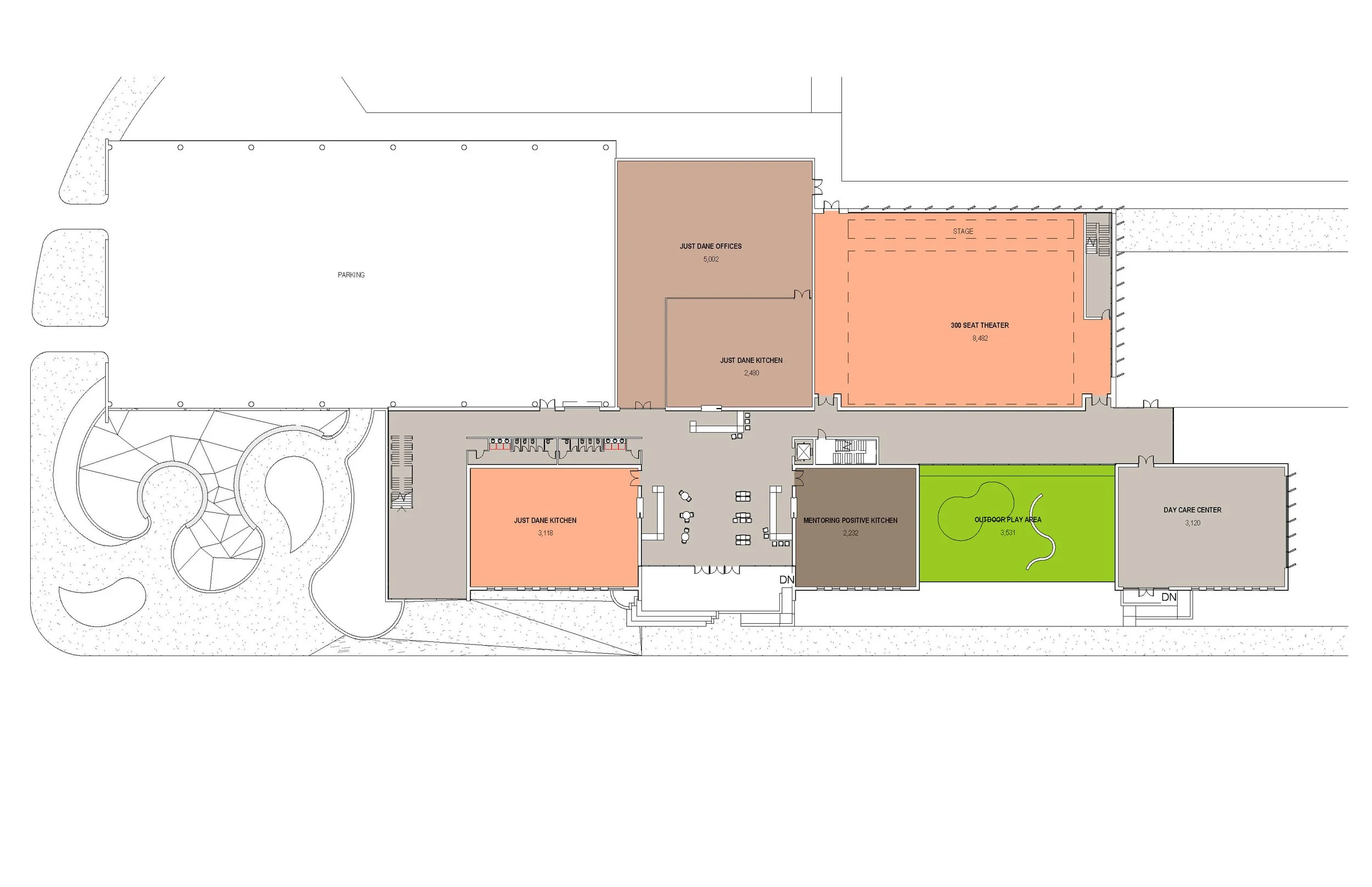 Our approach applies a sense of psychological safety, spatial dignity, and inclusivity. Key strategies include daylight optimization, biophilic integration, and the use of non-institutional materials and textures to promote emotional wellness. The facility features programmatic zones to accommodate mentorship programs, workforce development, and restorative practices, allowing for adaptive reuse and future growth.